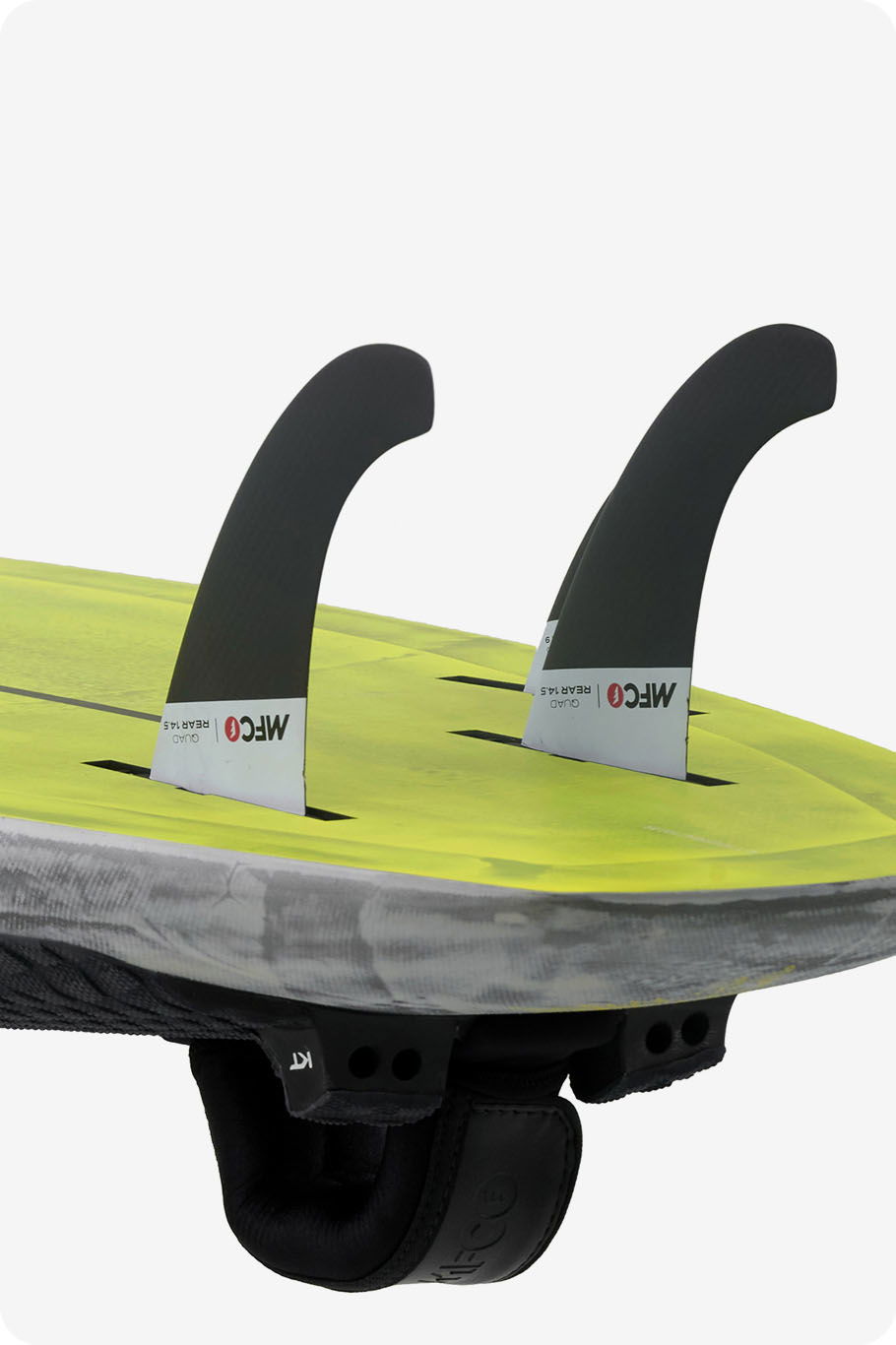 The grip is better than previous stock fins (MFC QS Quad), and the tail continues to rotate even in the latter half of the turn, making jibes, bottom turns, and top turns quicker and easier than before.